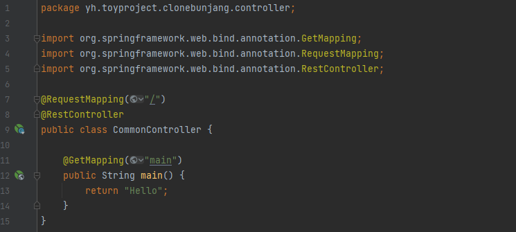 백엔드 서버에서는 대부분의 경우에 데이터를 JSON 형태로 전달할 것이므로 Rest Controller로 설정한다.